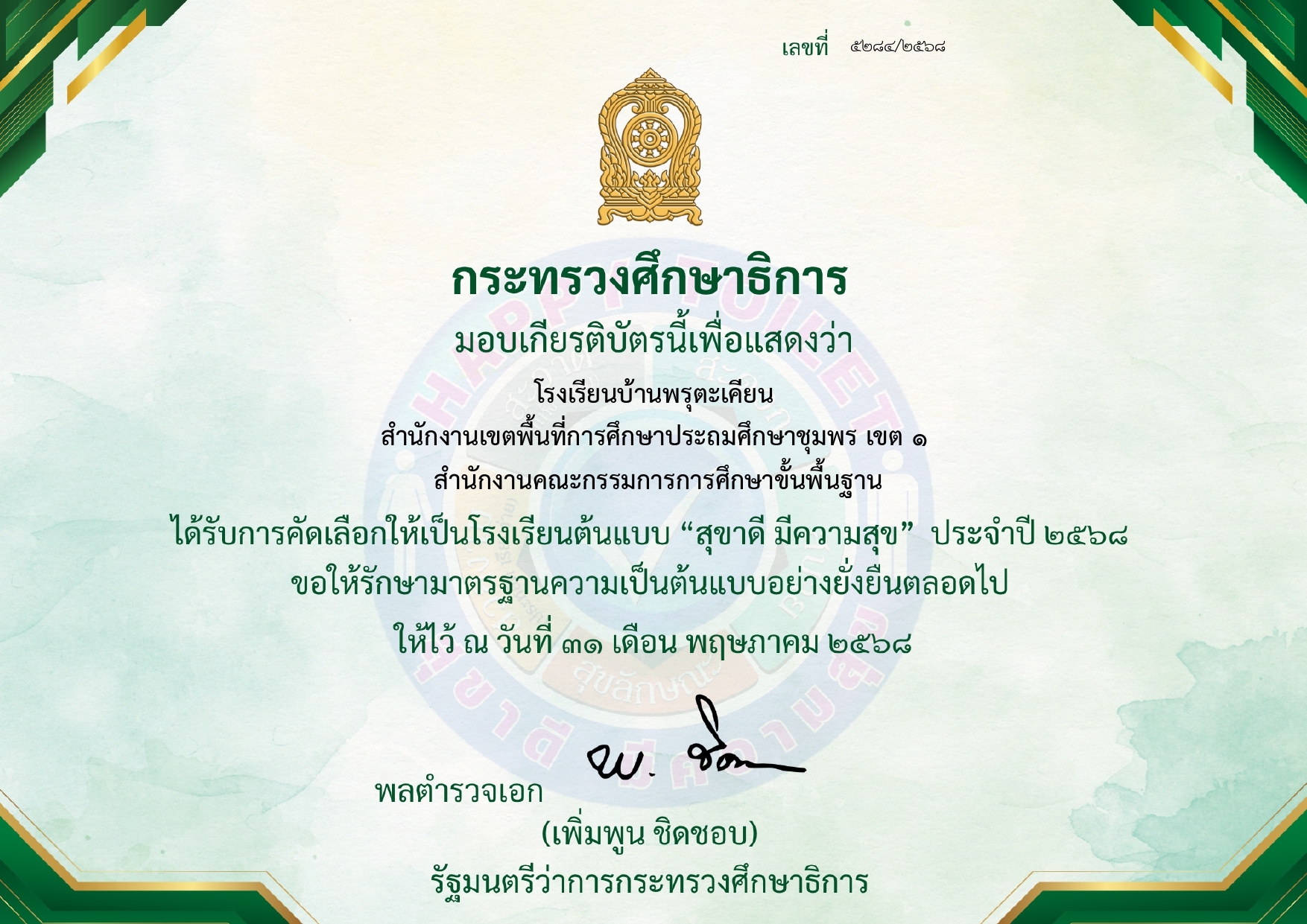 ยินดีต้อนรับเข้าสู่เว็บไซต์ โรงเรียนบ้านพรุตะเคียนค่ะ...